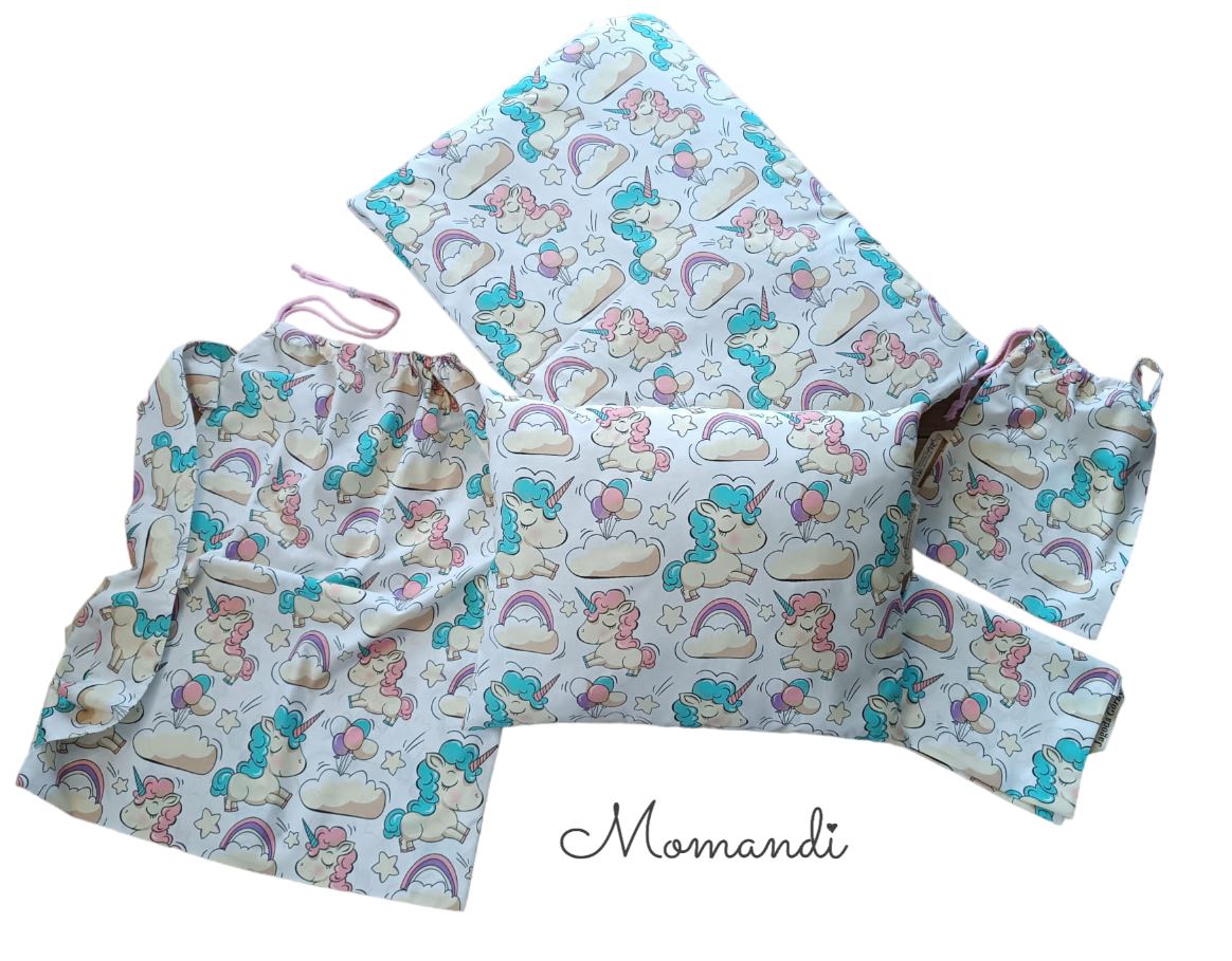 Oferujemy komplet 100% bawełniany z certyfikatem STANDARD 100 by OEKO-TEX ®. Do kompletu możesz dokupić dodatkową poszewkę na poduszkę, poszwę na koc, worek na ubrania, worek na pościel lub naprasowanki z imieniem dziecka.
