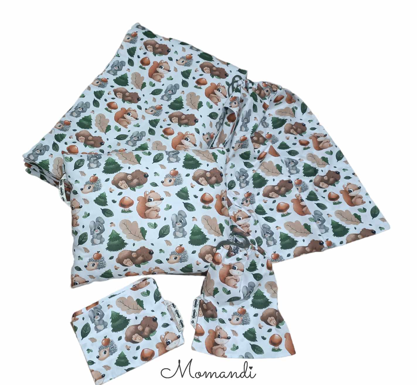 Oferujemy komplet 100% bawełniany z certyfikatem STANDARD 100 by OEKO-TEX ®. Do kompletu możesz dokupić dodatkową poszewkę na poduszkę, poszwę na koc, worek na ubrania, worek na pościel lub naprasowanki z imieniem dziecka.
